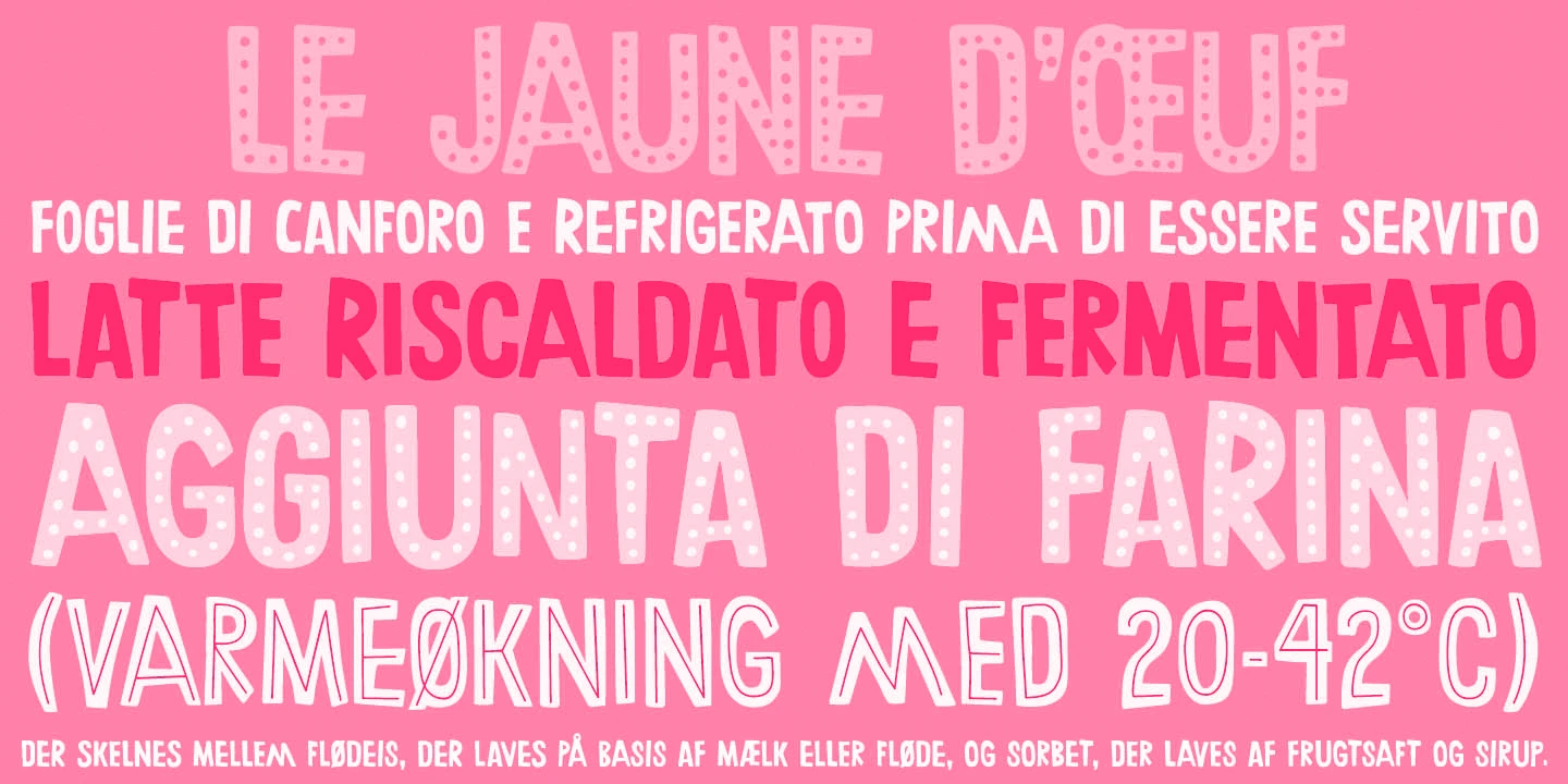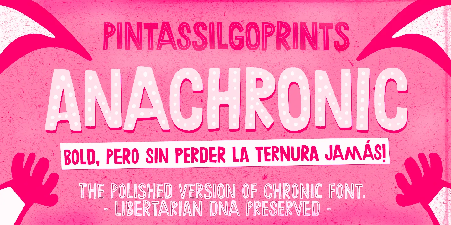 Anachronic is a decorative, hand-lettered sans serif. A friendly all-cap design initially inspired by the art of HAP Grieshaber but includes some elements by Willem Sandberg, too. Two artists who lived through two world wars, struggled for freedom, and consistently manifested their love of liberty with words, works, and actions. Whether you use Dots, Line, or Regular each style can add a playful quirkiness to your design.
