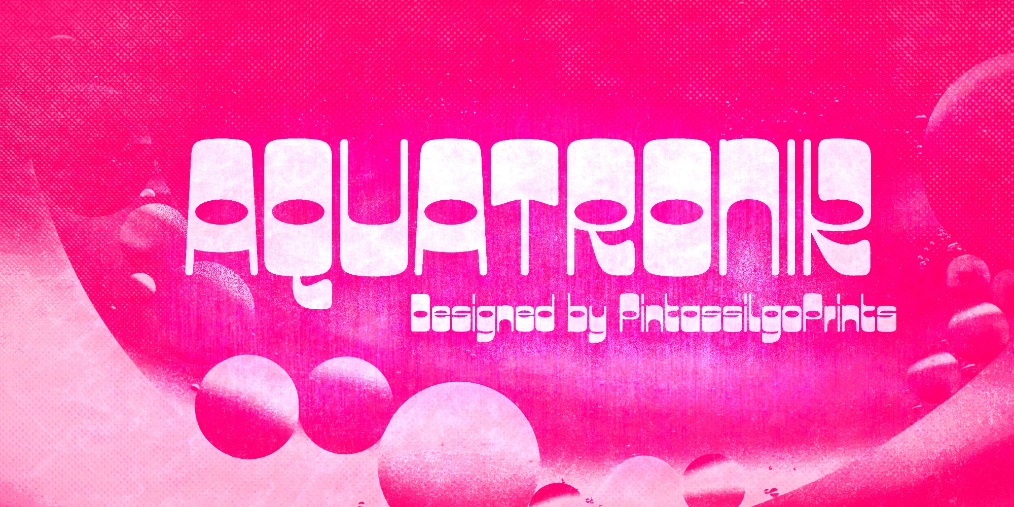 Aquatronik is a decorative display face with a somewhat retro-futuristic flair. It has alternate glyphs for some letters and numerals as well as extended language support, speaking more than 200 languages. The family includes three widths for added versatility. Aquatronik is an excellent pick for eye-catching designs, including posters, book covers, album art, editorial, apparel, and many more. Have fun!