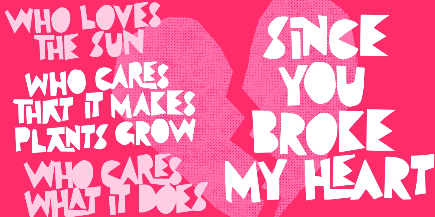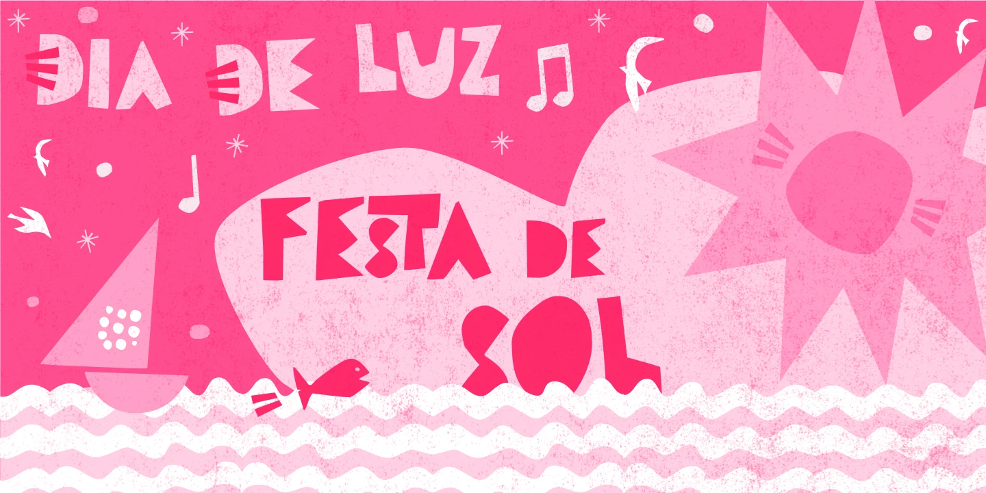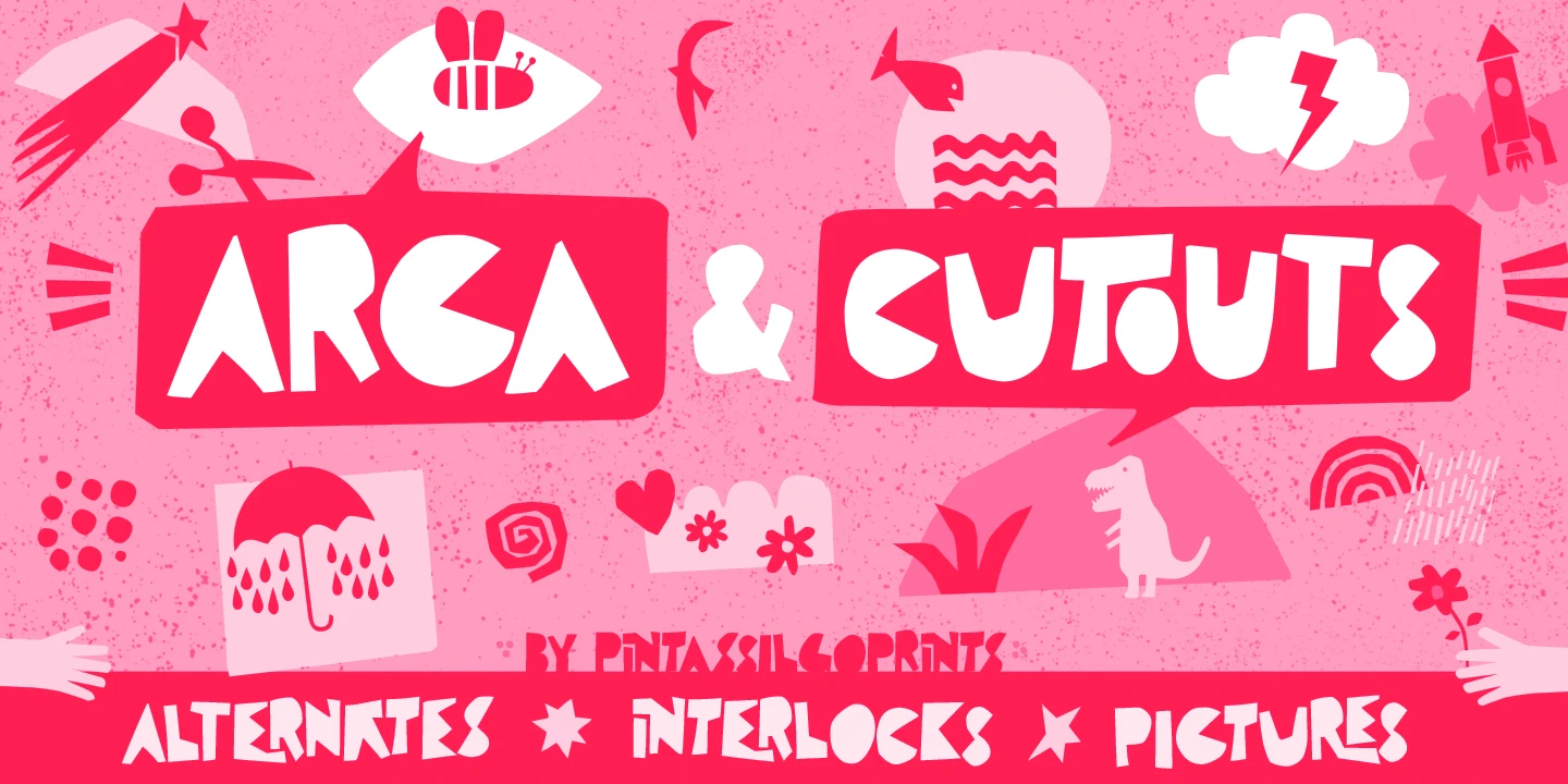 Arca is a charming font inspired by the beloved Brazilian children’s album by Vinicius de Moraes, author of the bossa nova classic ‘Garota de Ipanema’ (Girl from Ipanema), and his partner Tom Jobim. The font has a cheerful, cut-out look reminiscent of the original album cover designed by Elifas Andreato in 1980. Included are Cutouts to add that extra touch to your designs. Now, let’s dance!
