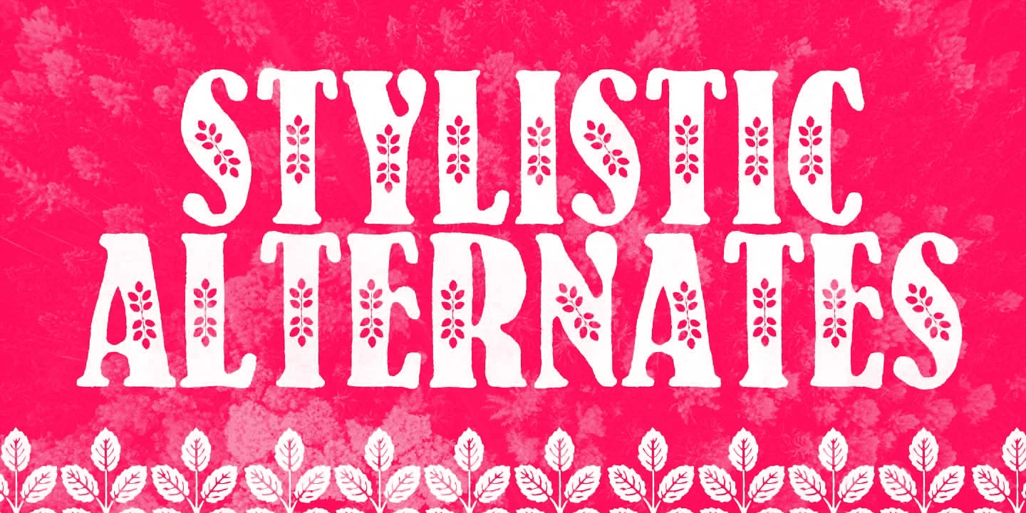 Botanique is a decorative family combining a set of floral illustrations with a hand-drawn typeface inspired by Schmalfette Bernhard Antiqua, designed by Lucien Bernhard. Botanique adds a charming roughness and somewhat retro mood. Botanique is a great choice for display purposes, including branding, packaging, editorial design, poster work, and more.