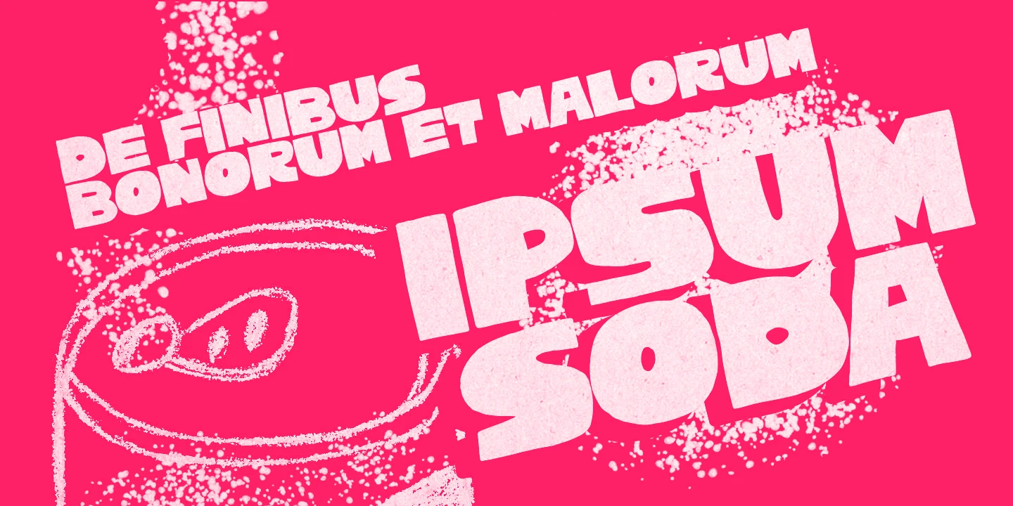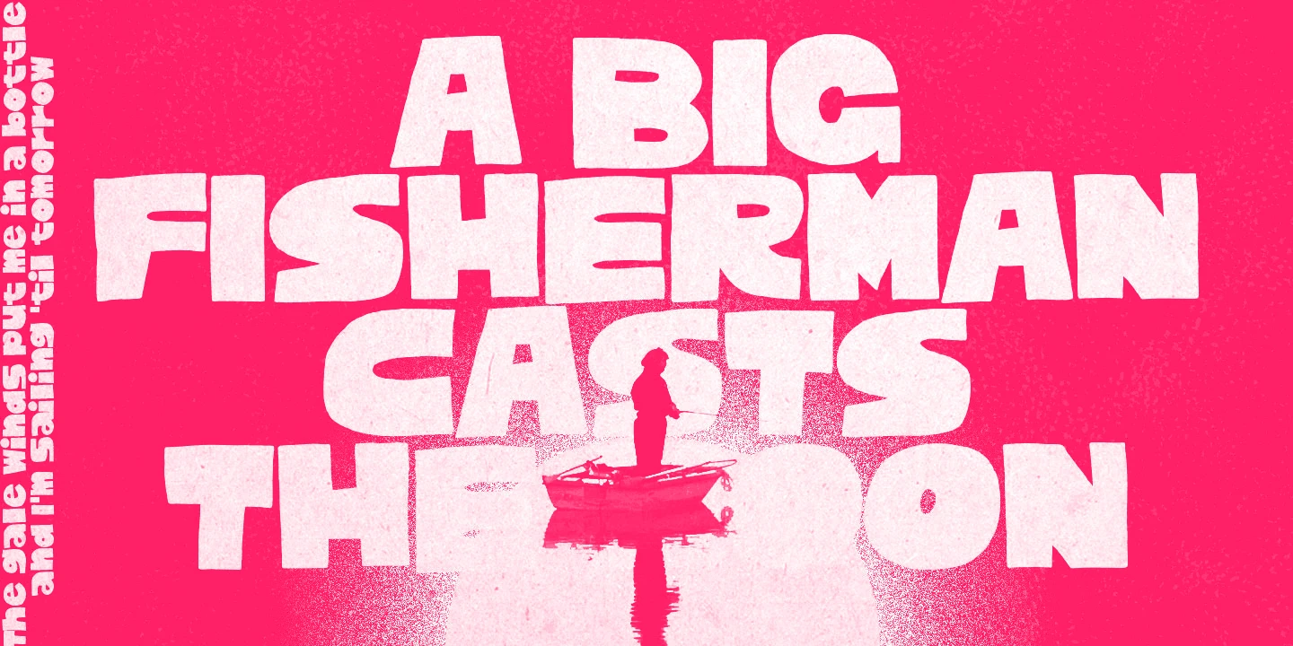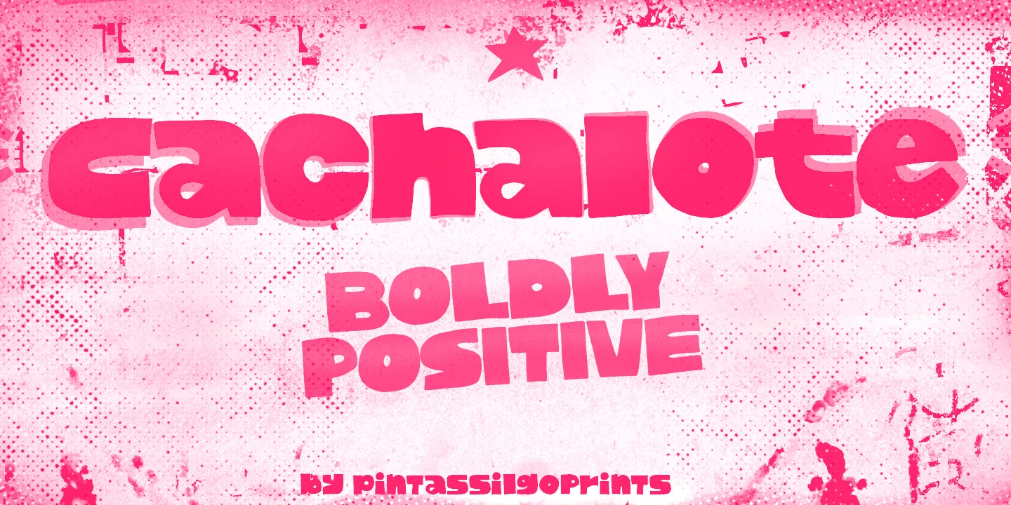 Cachalote is a positively bold display face drawn by subtracting negative space. Its exaggerated proportions and tight spacing give it an almost animated feel, evoking a whimsical, cartoonish tone. Ideal for children’s titles, toy packaging, retro posters, or playful branding where personality and visual impact are key.
