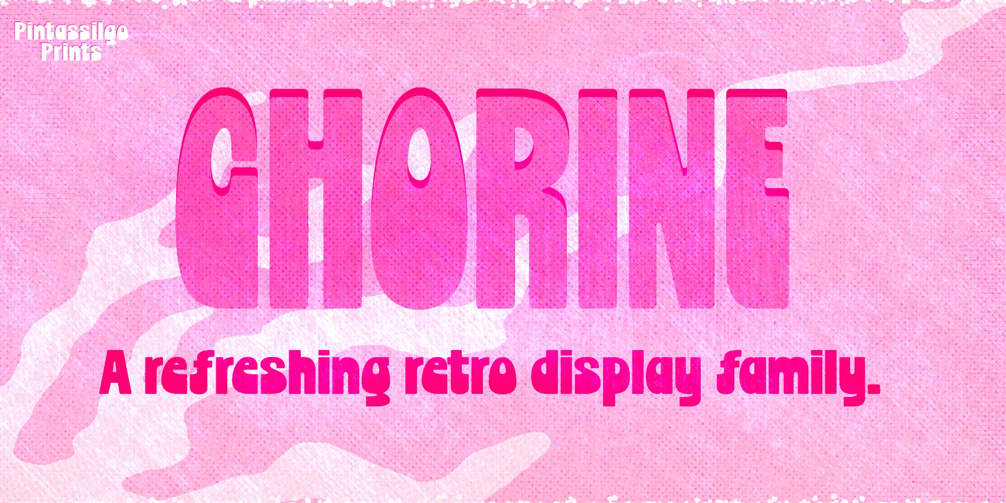 Chorine is a bold retro typeface that blends style with charm. With two cuts to choose from, it’s well-suited for vintage-inspired, psychedelic, or nostalgia-driven work. such as posters, album covers, or playful branding.
