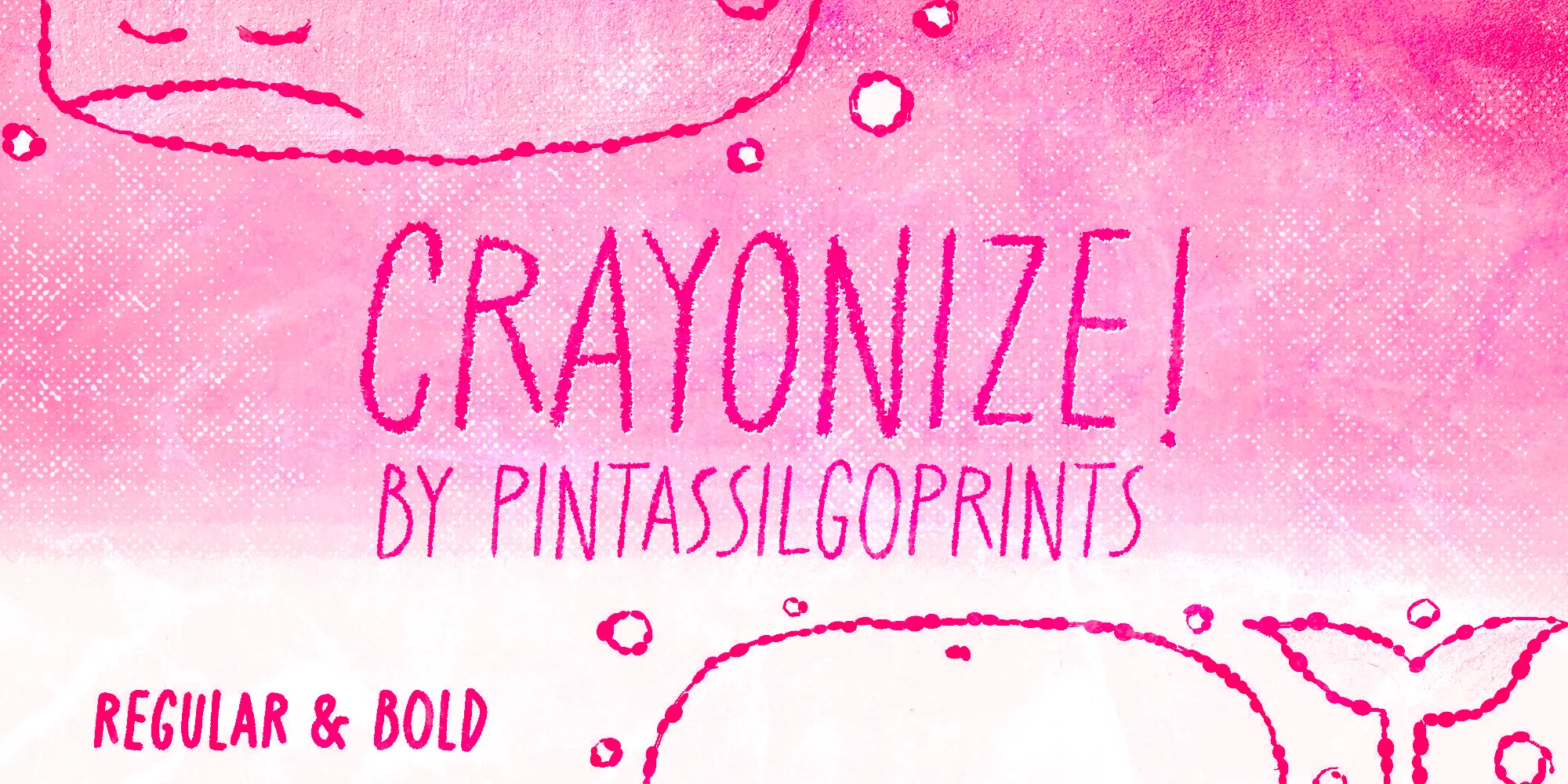 Crayonize is a casual, handwritten typeface with a fresh, crayon-like look. Available in two weights, this all-caps font family offers two options for each letter and number, creating a natural, organic, and hand-lettered feel. Crayonize is excellent for display purposes such as packaging, books, apparel, greeting cards, and opening titles. Give it a try, have fun, and keep on creating!