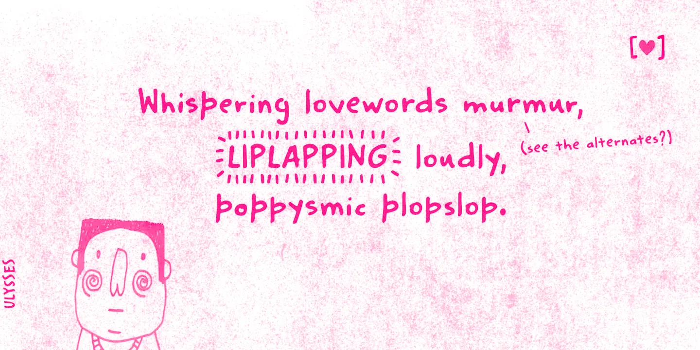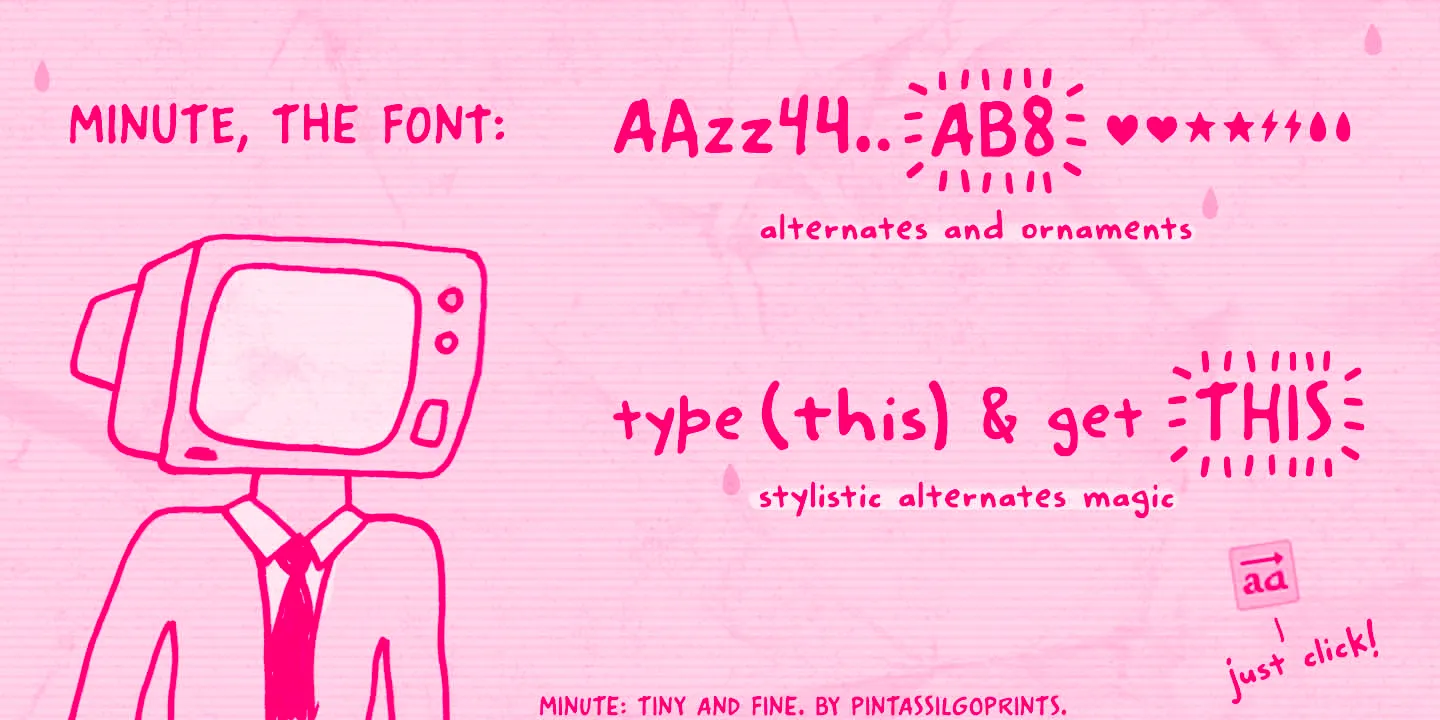Minute is a lively handwritten font created using a felt-tip pen. Designers will find it easy to achieve a naturally casual tone and hand-crafted look using the various alternates. Don’t miss the shining or blinking effect! Words feel spontaneous and relaxed, like notes jotted on a sketchbook page. You get the sense that it was meant for a birthday card or something personalized, such as homemade jellies and jams. Everything will look great in this Minute! You bet!
