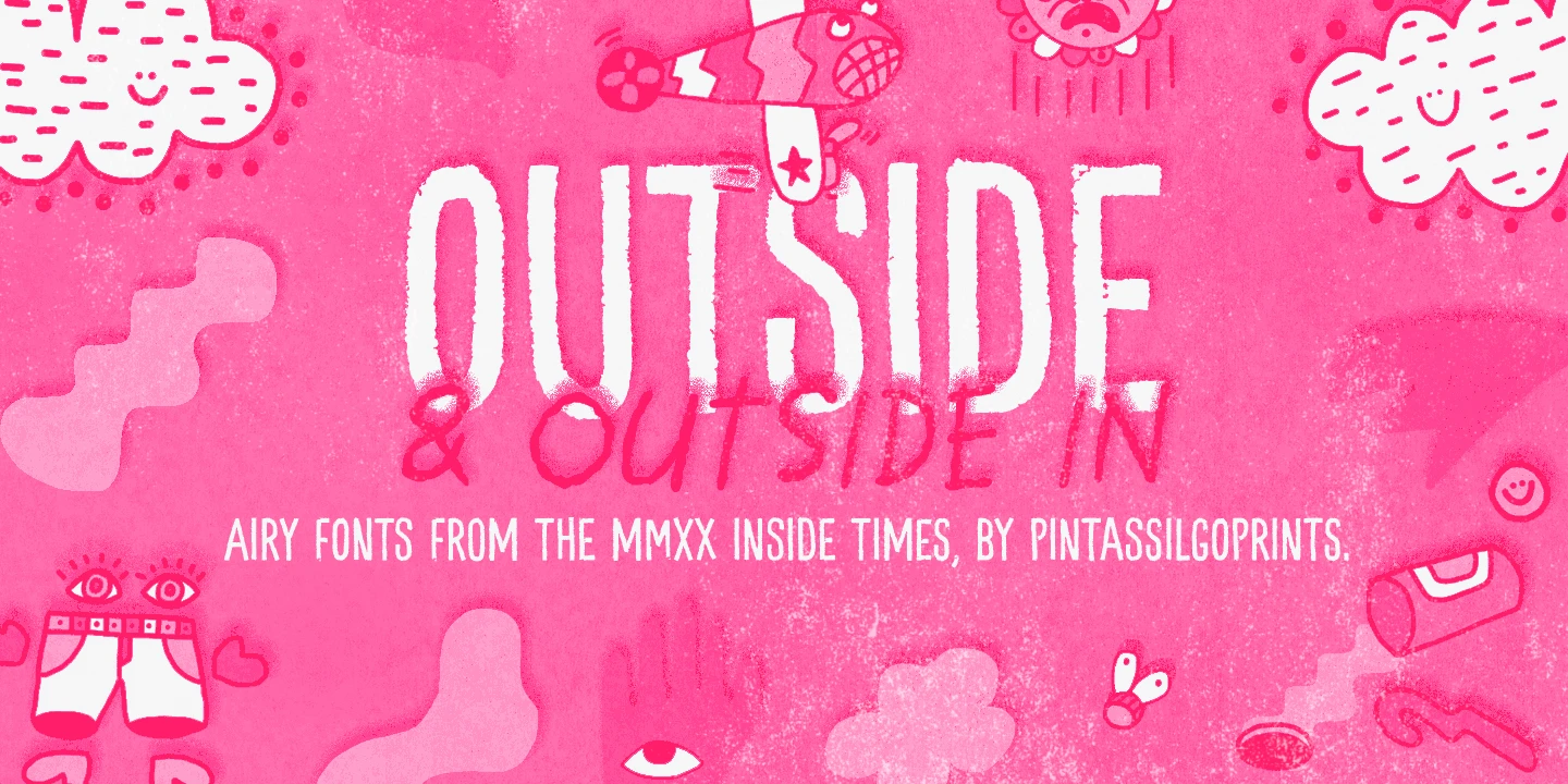 Outside is a laid-back, hand-lettered font family with two expressive styles. Outside In is a spirited script suggestive of notes scrawled in the moment, and Outside Regular, by contrast, is a tall, all-caps sans with a dry-brush texture and solid structure. Used together or separately, they offer a balanced mix of spontaneity and presence — ideal for book covers, handmade goods, packaging, posters, or any design aiming for authentic human energy. Give it a try, easy-going-ness guaranteed!