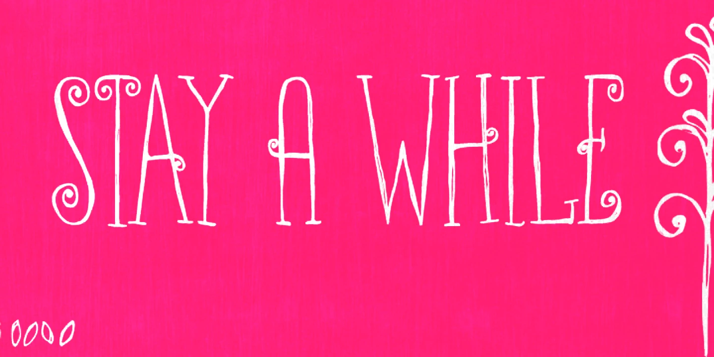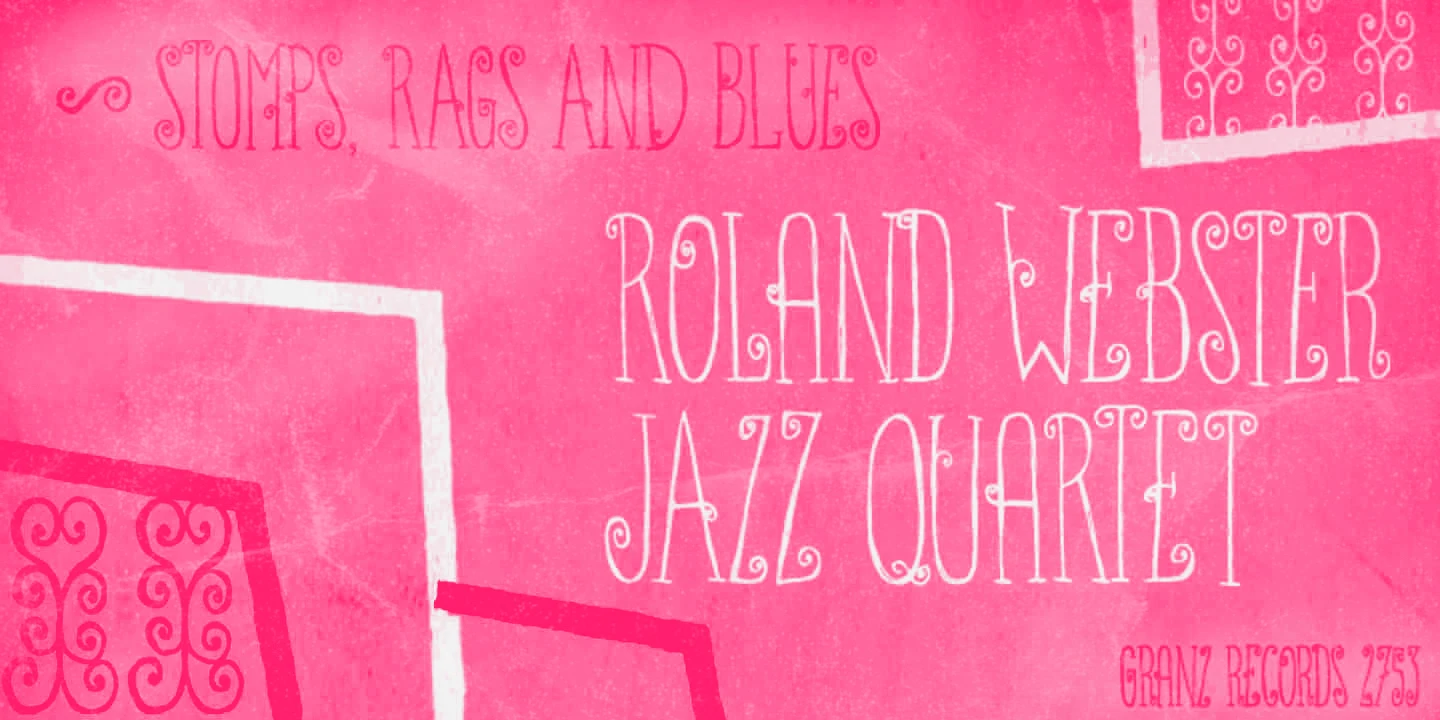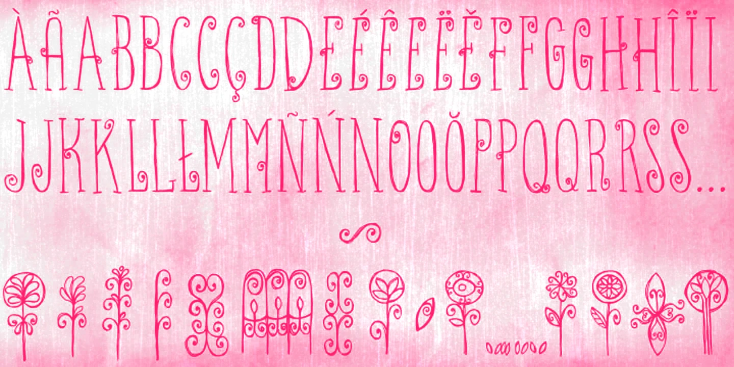 Ritornelos is a lively all-caps hand-drawn typeface. Condensed and quirky with serifs and swirls, it dances with ornate energy and lyrical detail, particularly when the alternates are used. Don’t miss the handy set of ornaments to add extra charm! Each character feels lovingly crafted — perfect for adding a touch of drama, elegance, or playful nostalgia. Whether used for book covers, boutique branding, or decorative headlines, Ritornelos turns every word into a performance.