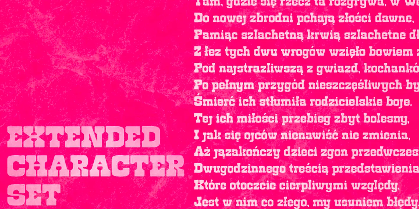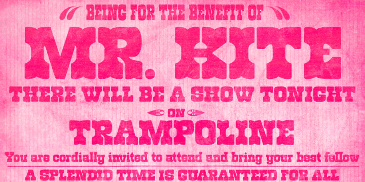 Roadway is a sturdy serif family with an antique feel. It was inspired by the Clarendon wood types from the late 19th century. It comes in three styles — Normal, Condensed, and the more decorative Tuscan — for added flexibility. Of course, it is excellent for enormous posters, album covers, food packaging, and magazine headlines. Still, imaginative graphic designers will know it has enough personality to do much more!
