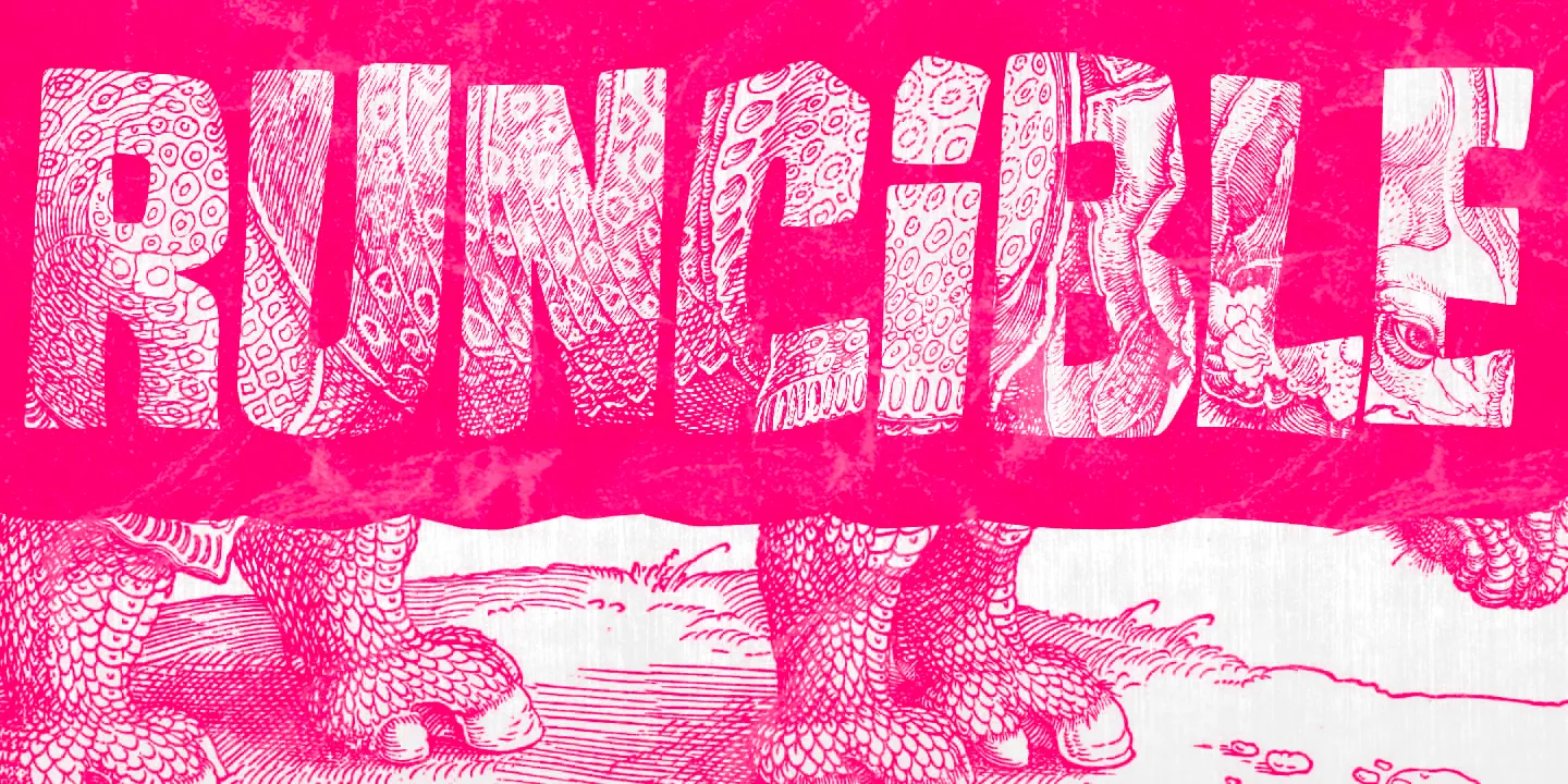 Runcible is a ruggedly dissonant all-caps display typeface. Two styles — solid and textured — with alternates to add a natural rhythm and remove repetition. To the trained eye of an avant-garde designer, it makes an abstract statement on a jazz music festival poster or personifies the zoo animals inside of an illustrated book, but this font family is also suited to gritty posters, album covers, and food packaging, too!