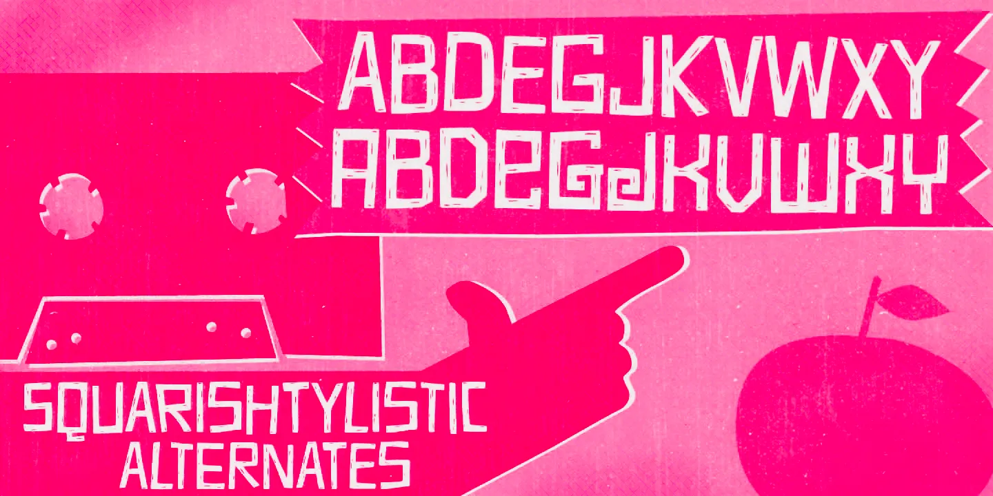 Sabotage is an irregular but lively all-caps typeface inspired by the lettering of Saul Bass found on his iconic Vertigo movie poster. With two versions of each letter for added flexibility and to enhance the hand-drawn feel, this font is suitable for a wide range of eye-catching design projects. Sabotage is available in 2 flavors: solid and not-that-solid. Also included is a cool, complementary picture font that draws inspiration from the minimalist yet striking book cover illustrations of Dick Bruna.