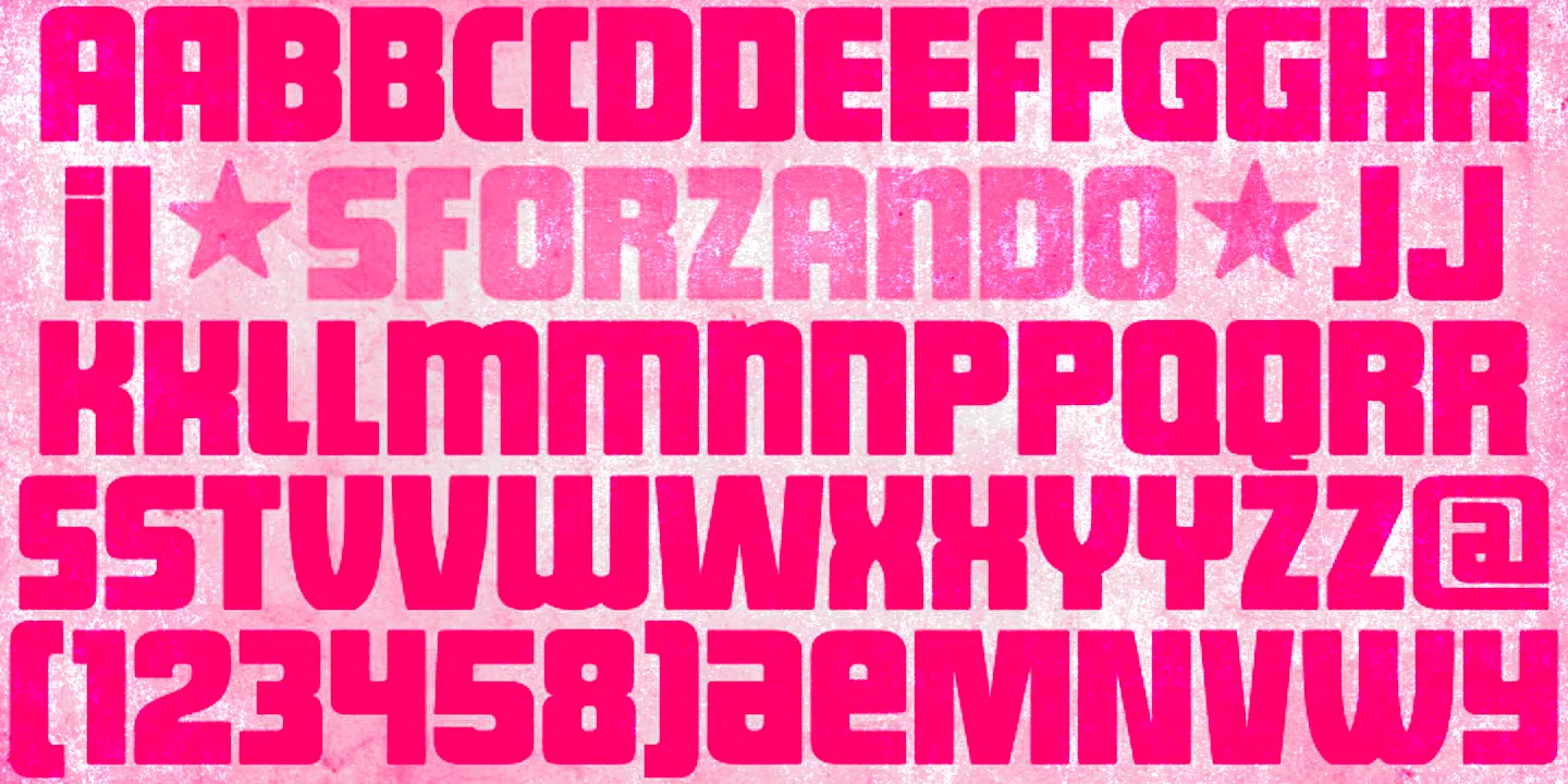 Sforzando is a strikingly bold and modern display sans serif font family. It comes with a small but handy set of alternates that help create an original and unusual touch, amplifying your design choices. Vigorous and versatile, its compact letterforms and tight spacing pack a visual punch. Sforzando is an excellent choice for a wide range of applications, including concert posters, editorial layouts, film titles, book covers, food packaging, and any situation where attention is non-negotiable!