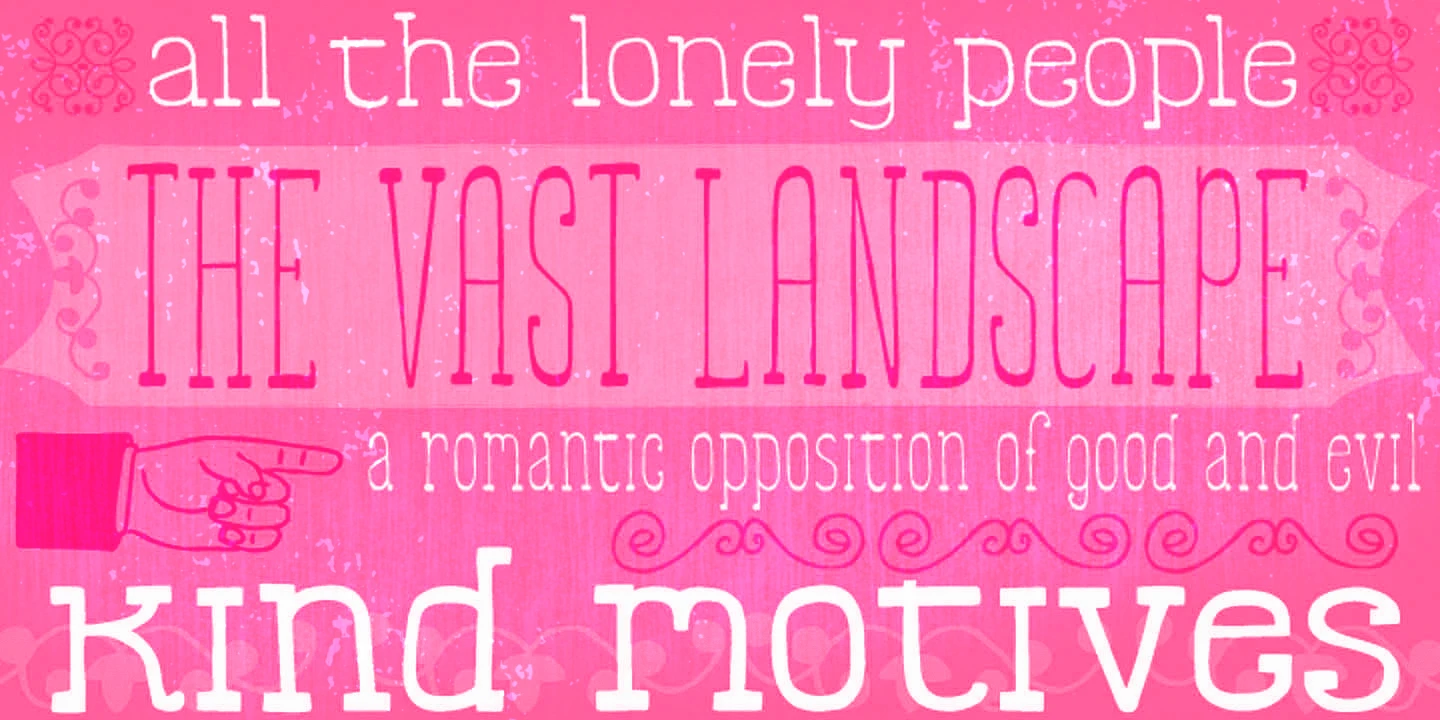 Somewhat is a quirky, hand-drawn slab serif with an upright stance and plenty of personality. With 4 styles and a playful set of ornaments, it balances whimsical charm and simple clarity in equal measure. Its bouncy forms and irregular proportions make it an attractive choice for friendly magazine headlines, comic book covers, children’s packaging, or offbeat branding. Suitable at any size, it’s both readable and expressive — amusing, handsome, and totally handy!