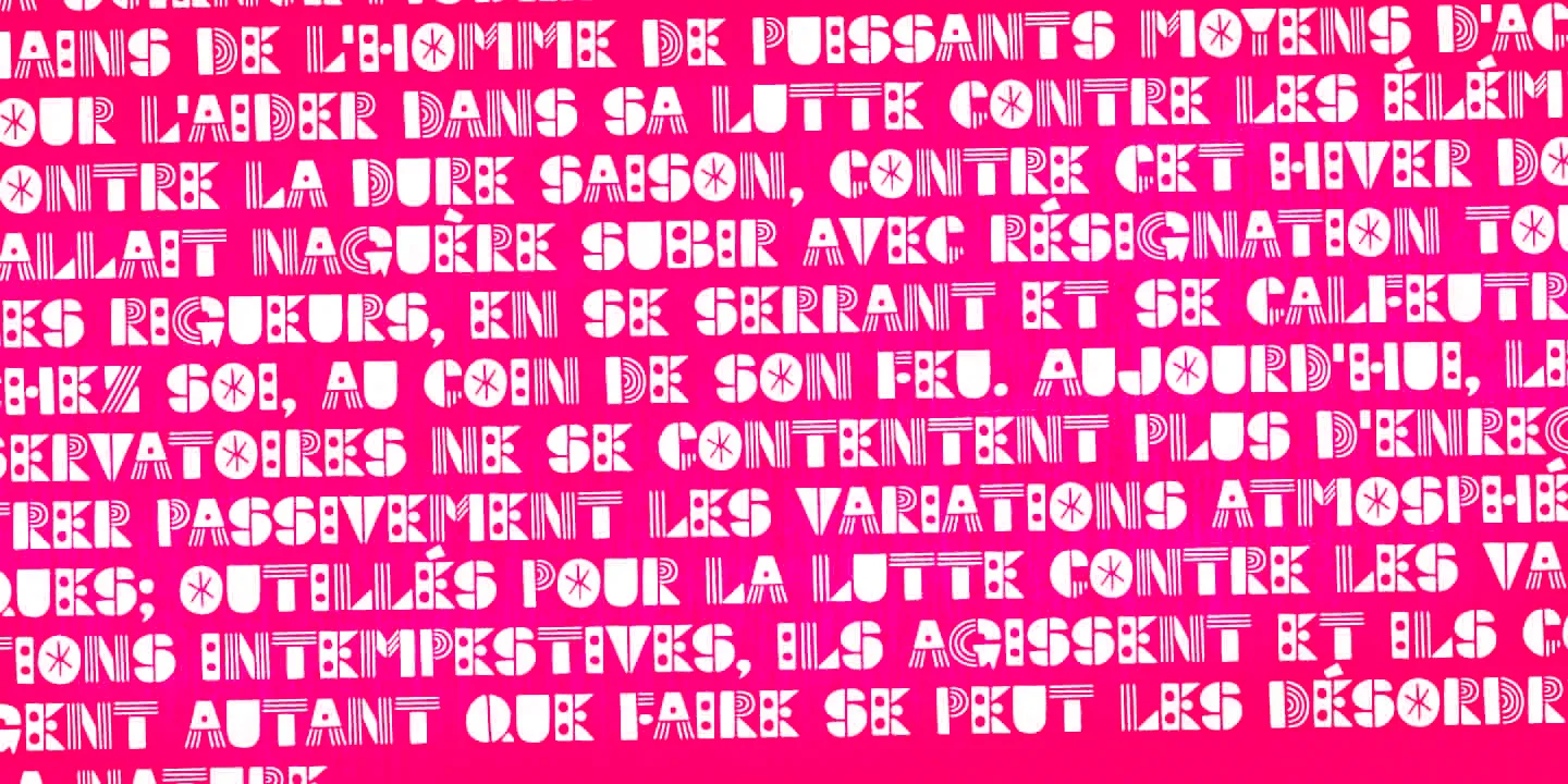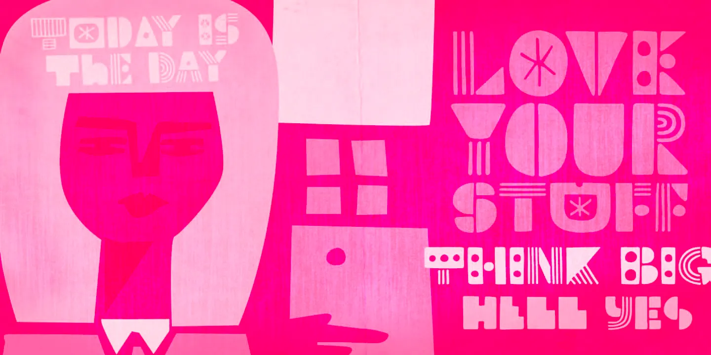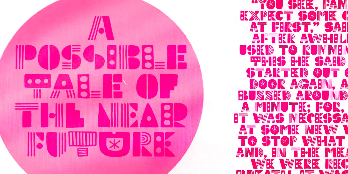Soundstar is a cheerfully decorative hand-drawn original! It’s a blocky and modular design but not at all square. Playful patterns, quirky shapes, even split apart and layered! Each letterform dances with a lively, rhythmic texture. The potential for play is positively endless! It’s perfect for expressive headlines, music-themed posters, zines, product packaging, or any design where energy is key. Soundstar isn’t just bold — it’s joyfully loud, delightfully irregular, and always ready to perform.