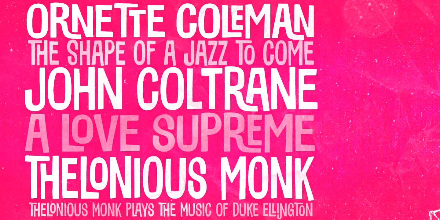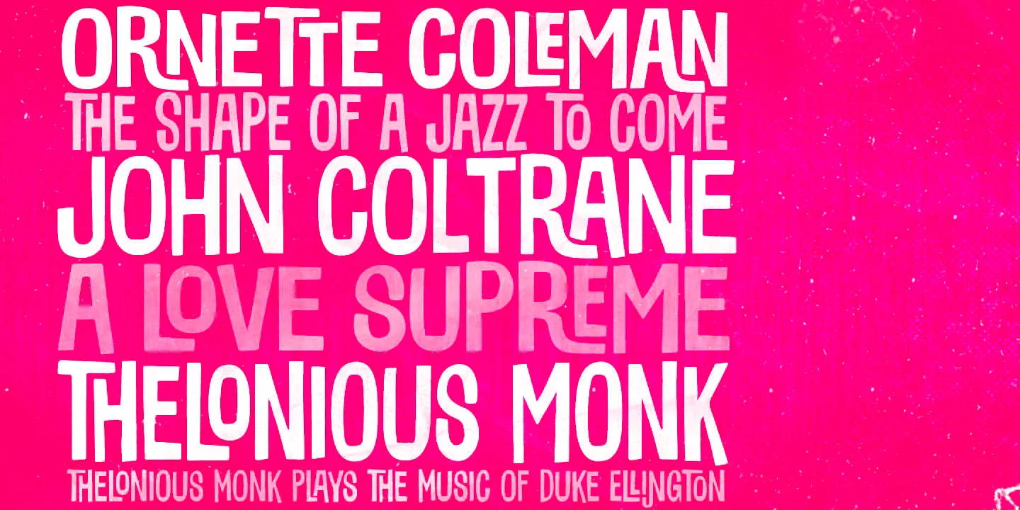 Sunbeat is a quite groovy, hand-lettered display sans serif font. The irregularity of the letter shapes — available in three styles — gives it an upbeat, modern look and a downtempo, vintage vibe. Don’t miss the interlocking pairs for adding a quirky twist when you need it! Suitable projects would be toy packaging, food packaging, album covers, television titles, party invitations, and movie posters. But really, the possibilities are endless.