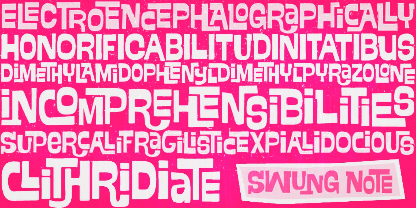 Swung Note is a groovily retro and dynamically original font packed with over 300 interlocking ligatures. Because the letters and words assume different shapes, the typography looks genuinely handcrafted. There are plenty of ways in which Swung Note can be used, and it will undoubtedly add style and energy to packaging, album covers, graphic novels, advertising campaigns, and social media branding. Swung Note is definitely a playful tool for creating unique, custom-looking work!