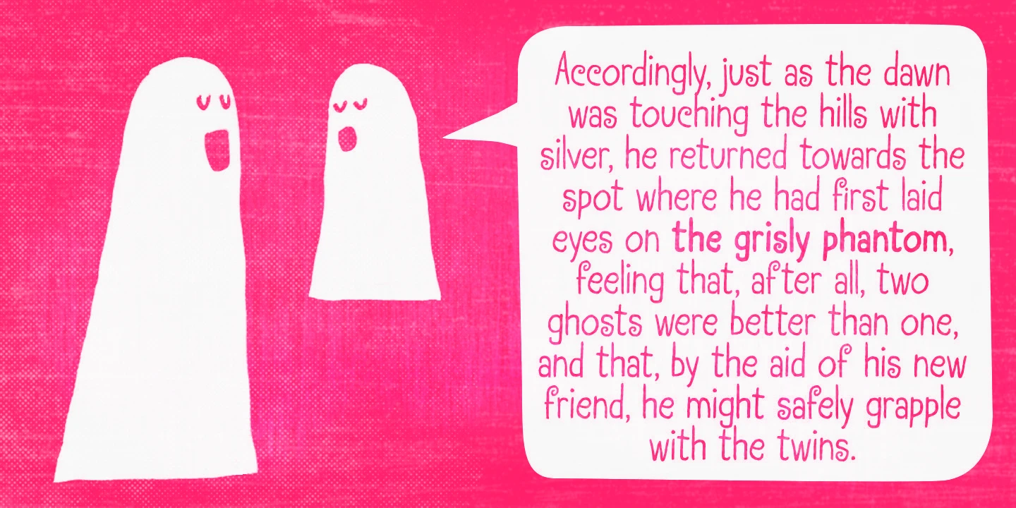 Transmogrified is a casually sweet, handwritten typeface. It began as the uppercase from Transmogrifier — inspired by Cuban posters by the talented graphic artist Eduardo Muñoz Bachs — but was simplified into something friendlier, and a lowercase was added to make it more usable for text. Pair it with Transmogrifier and make your designs more playful. It is childlike and friendly, perfect for all things kids, play, and casual.