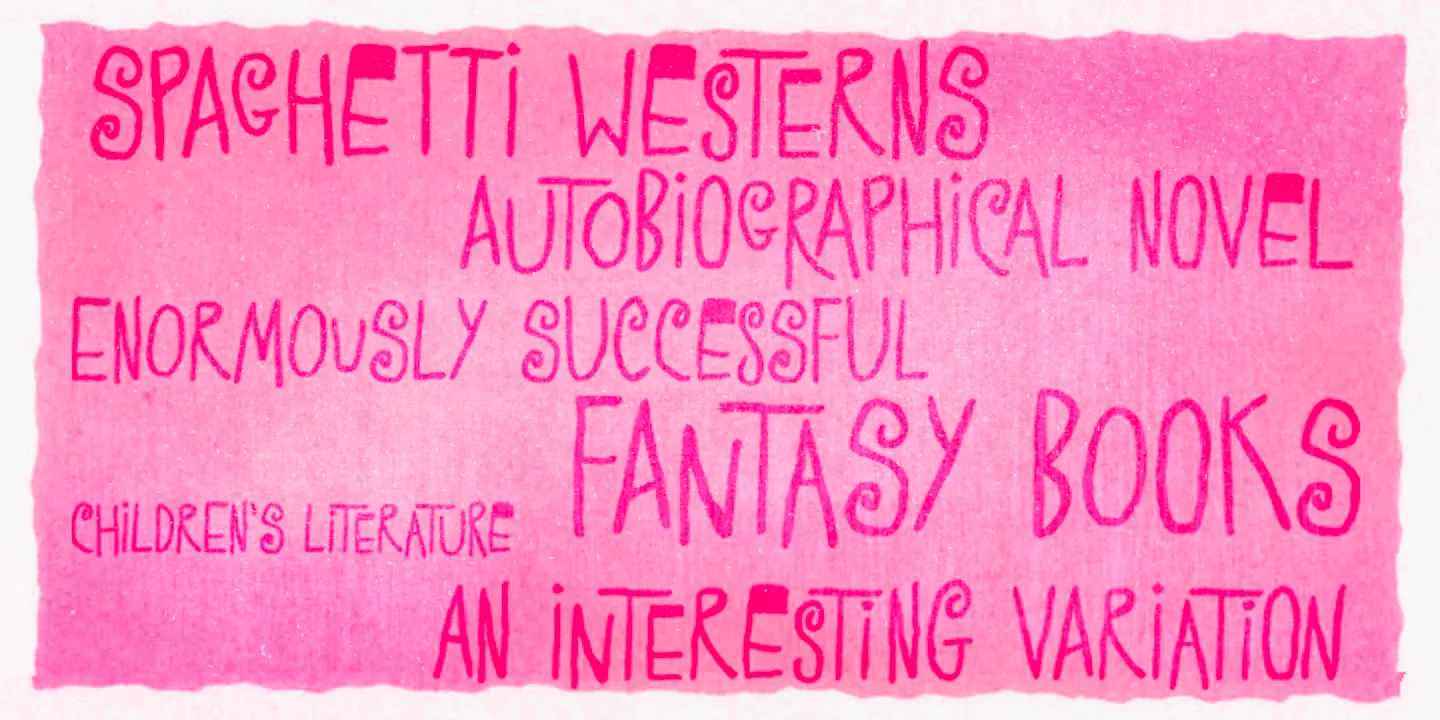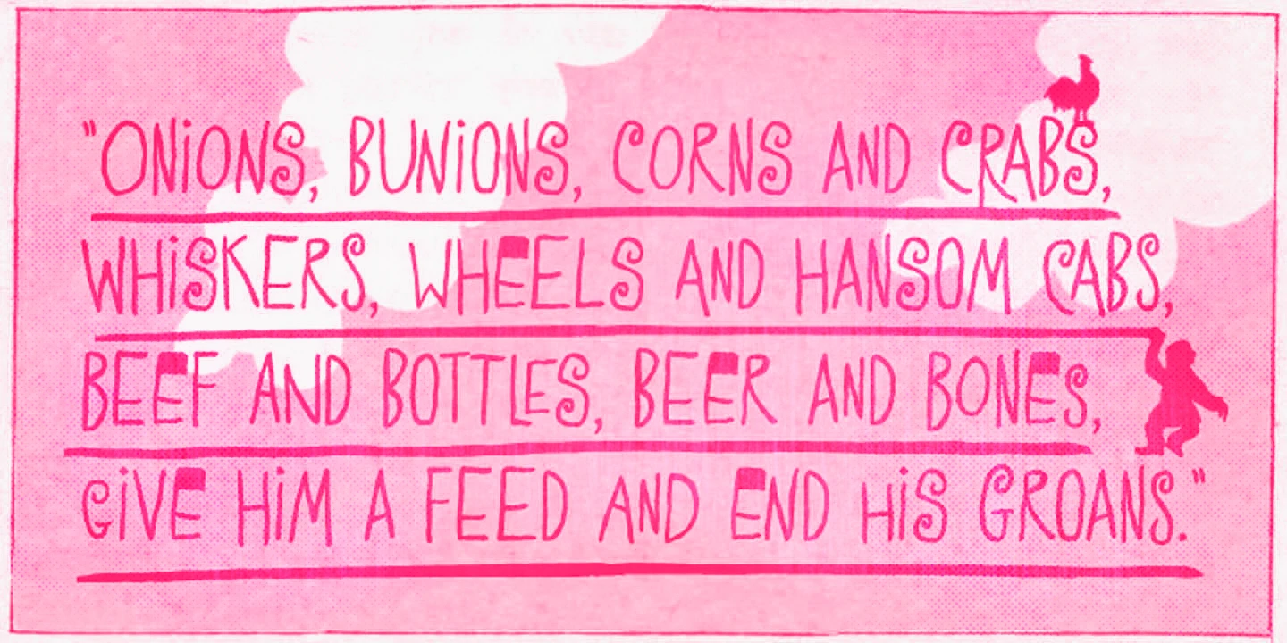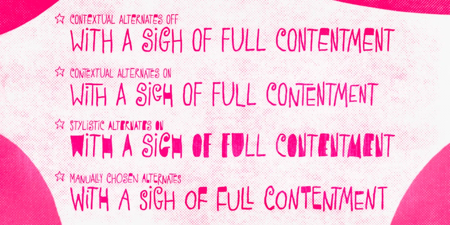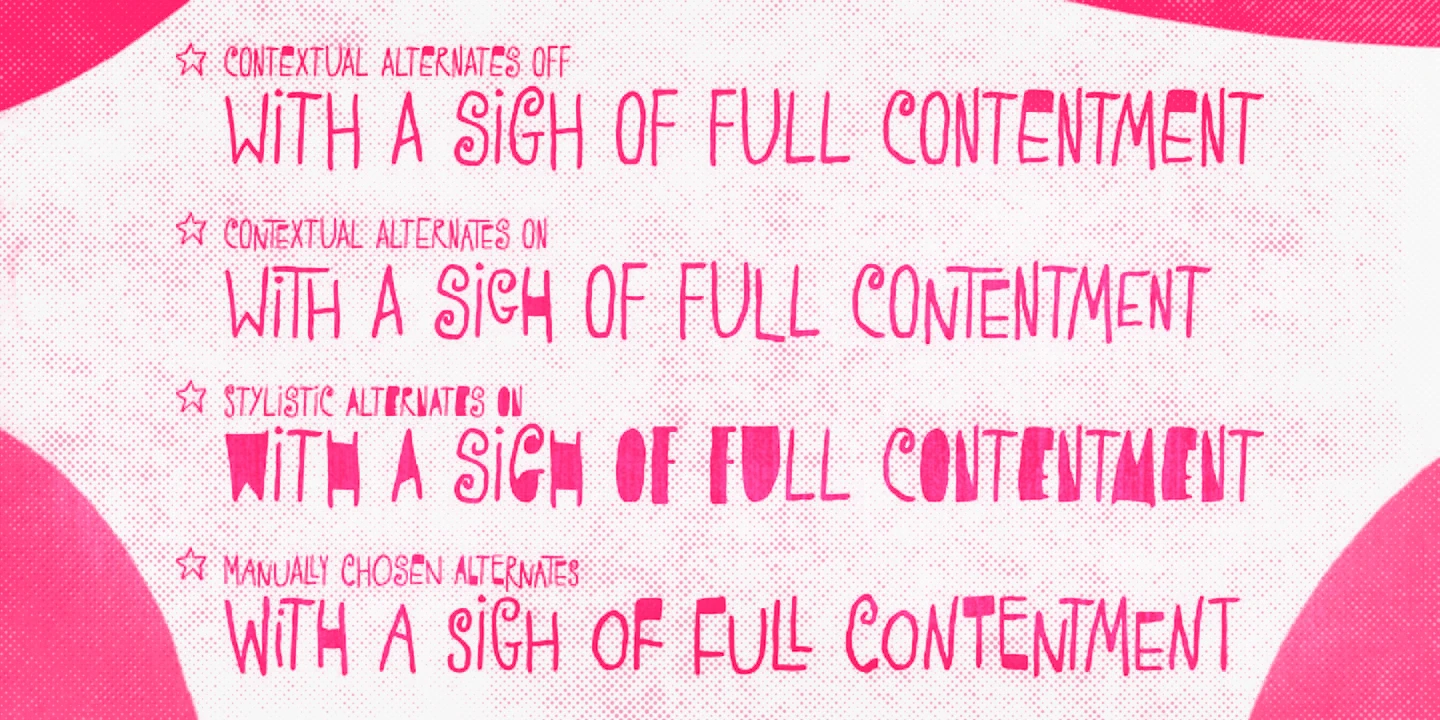 Transmogrifier is a single-style hand-lettered typeface inspired by Cuban posters by the talented and prolific graphic artist Eduardo Muñoz Bachs. It is filled with urgency and dynamism because it was hand-painted with a thin brush, using loose, fast strokes. The font is packed with plenty of alternates that will help create the illusion of original hand-lettered designs. The font also has a set of rough pictures based on charcoal sketches from the Shniedewend & Lee Company in 1888. These were handpainted with the same thin brush as the letters, making them a natural complement.