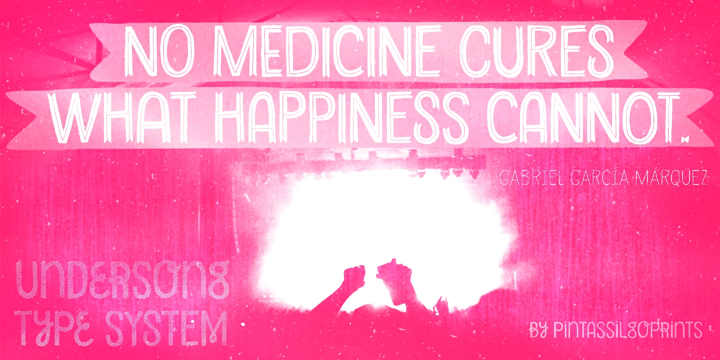 Undersong is a charmingly artisanal hand-lettered sans. With 13 quirky stackable styles that can be combined in many delectable ways — layered or not — you’ll see that these fancy faces work together scrumptiously well. Unicase in structure, but not a bland letter in sight, this family will work its magic on t-shirts, posters, book covers, packaging, and more! Some great font families out there are said to be workhorses. Think of Undersong as your work-unicorn: perfect for fantastical and imaginative projects!