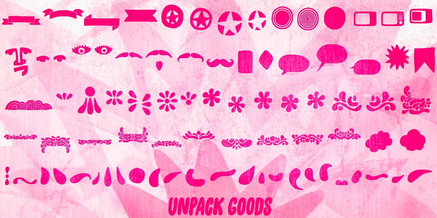 Unpack is an invitingly soft condensed sans serif. It is available in two cuts, upright and slanted, both all-caps, with 2 options for each letter for an organically uneven look. The family also has a picture font, loaded with some handy extras like banners, stars, and ornaments. This versatile family suits a wide range of projects. Food packaging, kids books, theatrical posters, album covers, and more! Don’t believe it? You don’t even need to unpack it to try!